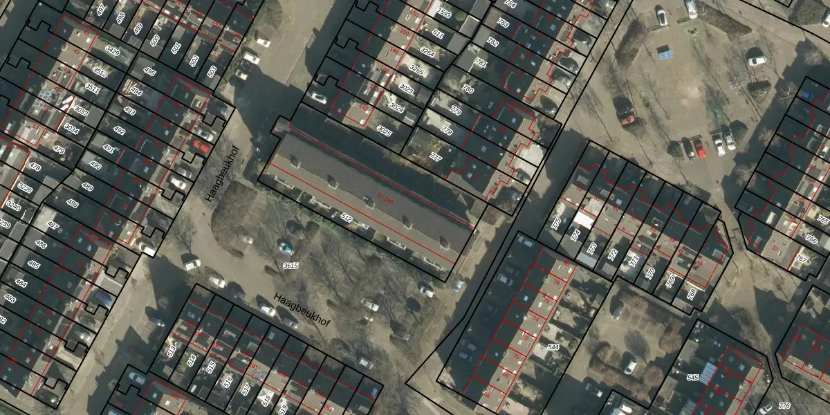 Het perceel waarop Haagbeukhof 86 staat heeft een oppervlakte van 1133 m². Dit is een zeer groot perceel. De perceeloppervlakte wordt geregistreerd door het Kadaster. Gedetailleerde informatie over de maten van dit perceel kunt u vinden in het rapport Kadastrale kaart met maatvoering van Haagbeukhof 86.