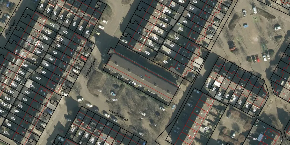 Het perceel waarop Haagbeukhof 90 staat heeft een oppervlakte van 1133 m². Dit is een zeer groot perceel. De perceeloppervlakte wordt geregistreerd door het Kadaster. Gedetailleerde informatie over de maten van dit perceel kunt u vinden in het rapport Kadastrale kaart met maatvoering van Haagbeukhof 90.