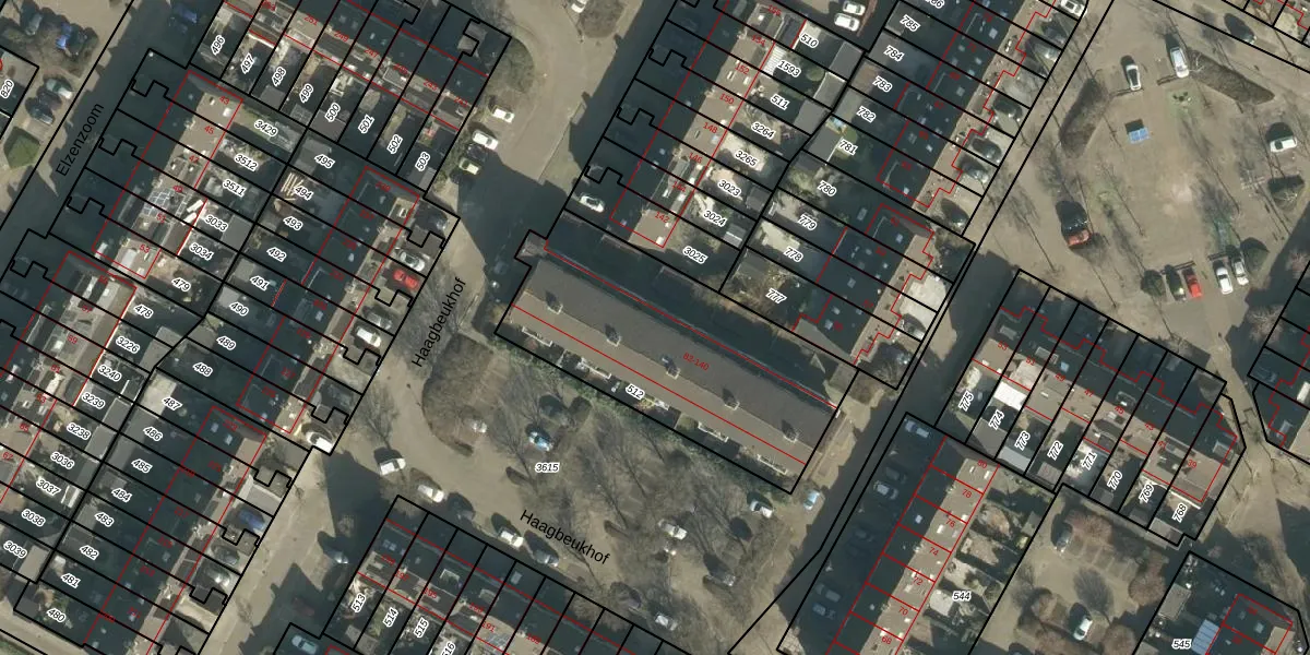 Het perceel waarop Haagbeukhof 92 staat heeft een oppervlakte van 1133 m². Dit is een zeer groot perceel. De perceeloppervlakte wordt geregistreerd door het Kadaster. Gedetailleerde informatie over de maten van dit perceel kunt u vinden in het rapport Kadastrale kaart met maatvoering van Haagbeukhof 92.