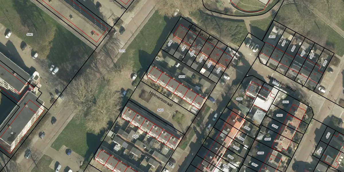 Het perceel waarop Helmersstraat 5 staat heeft een oppervlakte van 840 m². Dit is een groot perceel. De perceeloppervlakte wordt geregistreerd door het Kadaster. Gedetailleerde informatie over de maten van dit perceel kunt u vinden in het rapport Kadastrale kaart met maatvoering van Helmersstraat 5.