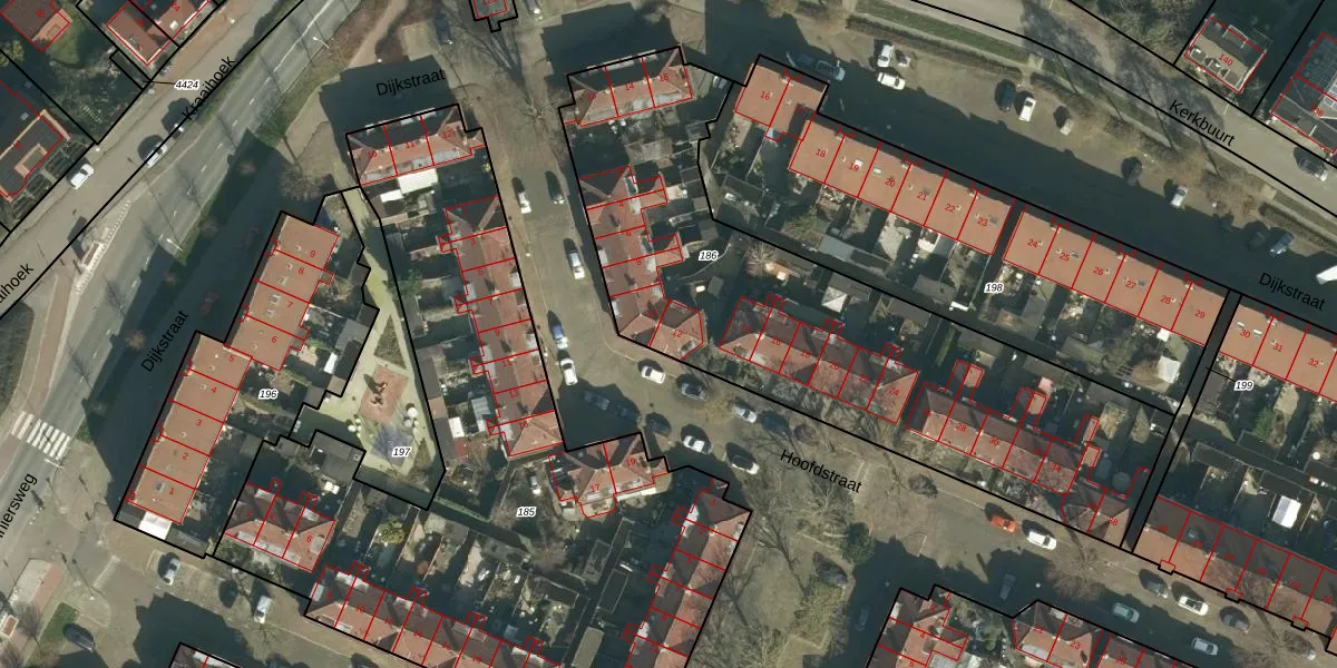 Het perceel waarop Hoofdstraat 12 staat heeft een oppervlakte van 2320 m². Dit is een zeer groot perceel. De perceeloppervlakte wordt geregistreerd door het Kadaster. Gedetailleerde informatie over de maten van dit perceel kunt u vinden in het rapport Kadastrale kaart met maatvoering van Hoofdstraat 12.