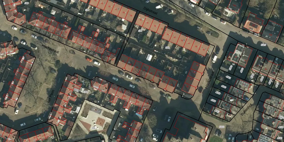 Het perceel waarop Hoofdstraat 46 staat heeft een oppervlakte van 2424 m². Dit is een zeer groot perceel. De perceeloppervlakte wordt geregistreerd door het Kadaster. Gedetailleerde informatie over de maten van dit perceel kunt u vinden in het rapport Kadastrale kaart met maatvoering van Hoofdstraat 46.