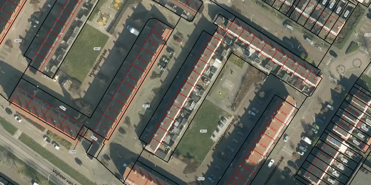 Het perceel waarop Jasmijnstraat 12 staat heeft een oppervlakte van 2401 m². Dit is een zeer groot perceel. De perceeloppervlakte wordt geregistreerd door het Kadaster. Gedetailleerde informatie over de maten van dit perceel kunt u vinden in het rapport Kadastrale kaart met maatvoering van Jasmijnstraat 12.