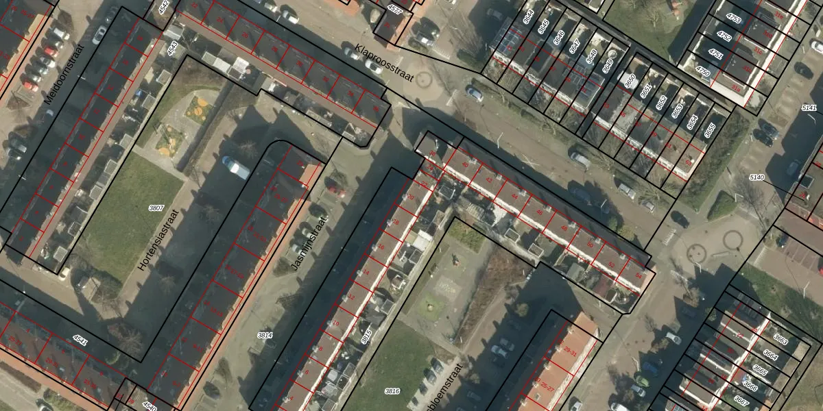 Jasmijnstraat 20 is gelegen op kadastraal perceel PPD00B3815. Deze kadastrale aanduiding is uniek en wordt gebruikt door het Kadaster om eigendomsrechten en andere zakelijke rechten vast te leggen. Het perceel maakt onderdeel uit van de kadastrale gemeente Papendrecht.