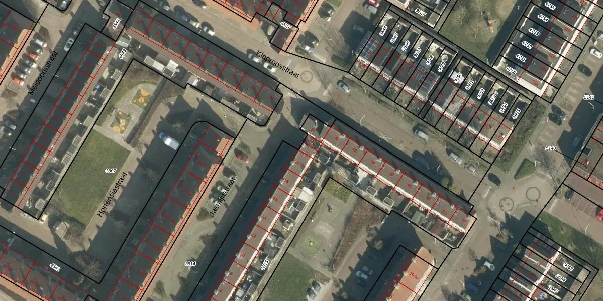 Het perceel waarop Jasmijnstraat 22 staat heeft een oppervlakte van 2401 m². Dit is een zeer groot perceel. De perceeloppervlakte wordt geregistreerd door het Kadaster. Gedetailleerde informatie over de maten van dit perceel kunt u vinden in het rapport Kadastrale kaart met maatvoering van Jasmijnstraat 22.