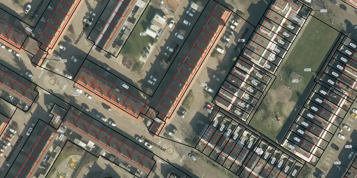 Het perceel waarop Jasmijnstraat 41 staat heeft een oppervlakte van 1640 m². Dit is een zeer groot perceel. De perceeloppervlakte wordt geregistreerd door het Kadaster. Gedetailleerde informatie over de maten van dit perceel kunt u vinden in het rapport Kadastrale kaart met maatvoering van Jasmijnstraat 41.