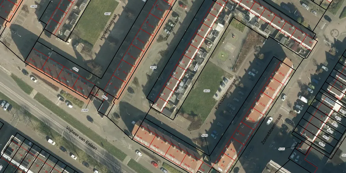 Het perceel waarop Jasmijnstraat 6 staat heeft een oppervlakte van 2401 m². Dit is een zeer groot perceel. De perceeloppervlakte wordt geregistreerd door het Kadaster. Gedetailleerde informatie over de maten van dit perceel kunt u vinden in het rapport Kadastrale kaart met maatvoering van Jasmijnstraat 6.