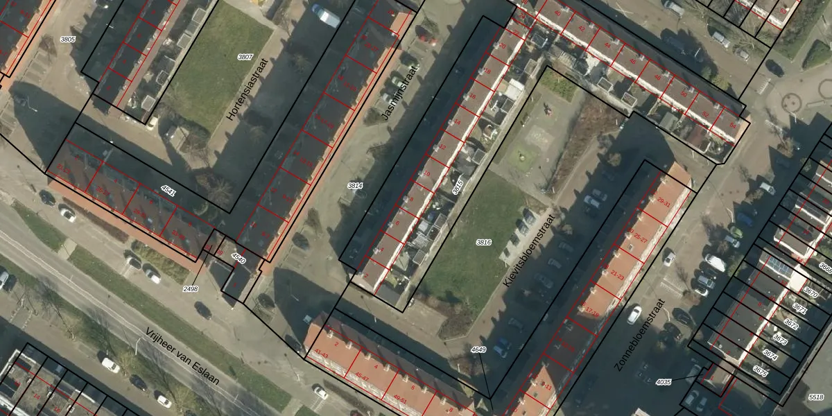 Het perceel waarop Jasmijnstraat 8 staat heeft een oppervlakte van 2401 m². Dit is een zeer groot perceel. De perceeloppervlakte wordt geregistreerd door het Kadaster. Gedetailleerde informatie over de maten van dit perceel kunt u vinden in het rapport Kadastrale kaart met maatvoering van Jasmijnstraat 8.