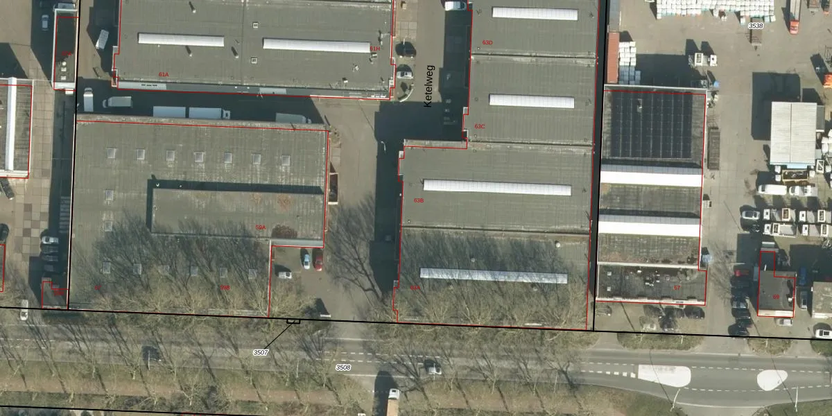 Het perceel waarop Ketelweg 63-B staat heeft een oppervlakte van 2,0 ha. Dit is een zeer groot perceel. De perceeloppervlakte wordt geregistreerd door het Kadaster. Gedetailleerde informatie over de maten van dit perceel kunt u vinden in het rapport Kadastrale kaart met maatvoering van Ketelweg 63-B.