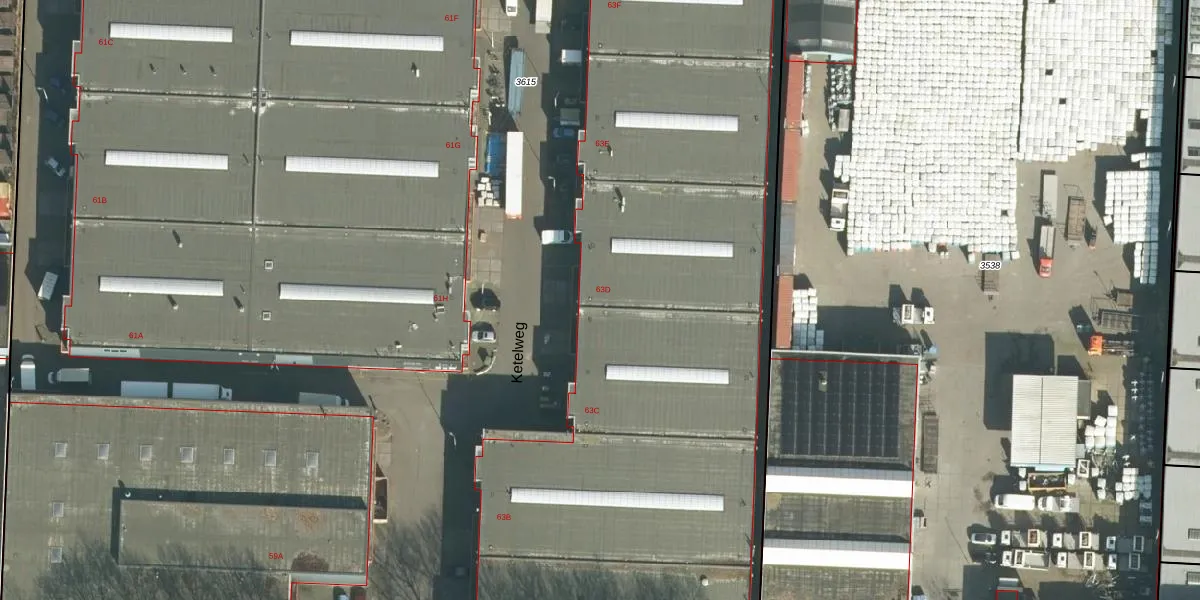 Het perceel waarop Ketelweg 63-D staat heeft een oppervlakte van 2,0 ha. Dit is een zeer groot perceel. De perceeloppervlakte wordt geregistreerd door het Kadaster. Gedetailleerde informatie over de maten van dit perceel kunt u vinden in het rapport Kadastrale kaart met maatvoering van Ketelweg 63-D.
