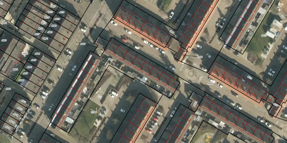 Klaproosstraat 12 is gelegen op kadastraal perceel PPD00B4487. Deze kadastrale aanduiding is uniek en wordt gebruikt door het Kadaster om eigendomsrechten en andere zakelijke rechten vast te leggen. Het perceel maakt onderdeel uit van de kadastrale gemeente Papendrecht.