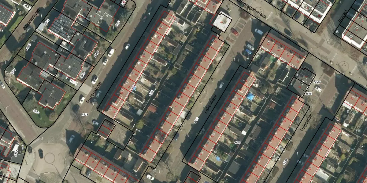 Het perceel waarop Leliestraat 15 staat heeft een oppervlakte van 4615 m². Dit is een zeer groot perceel. De perceeloppervlakte wordt geregistreerd door het Kadaster. Gedetailleerde informatie over de maten van dit perceel kunt u vinden in het rapport Kadastrale kaart met maatvoering van Leliestraat 15.
