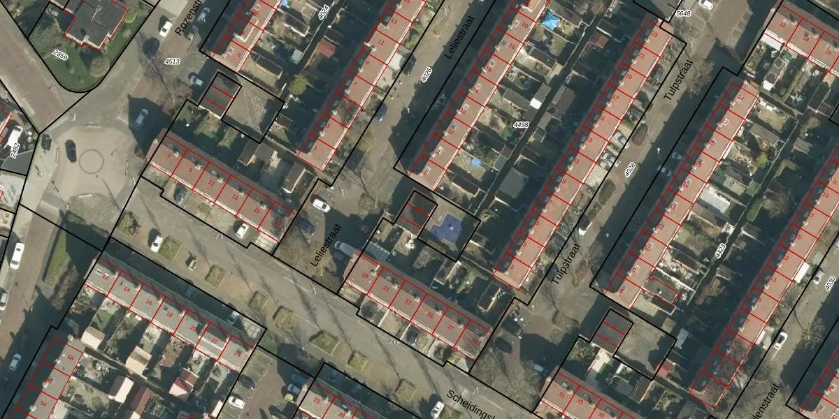 Het perceel waarop Leliestraat 4 staat heeft een oppervlakte van 4490 m². Dit is een zeer groot perceel. De perceeloppervlakte wordt geregistreerd door het Kadaster. Gedetailleerde informatie over de maten van dit perceel kunt u vinden in het rapport Kadastrale kaart met maatvoering van Leliestraat 4.