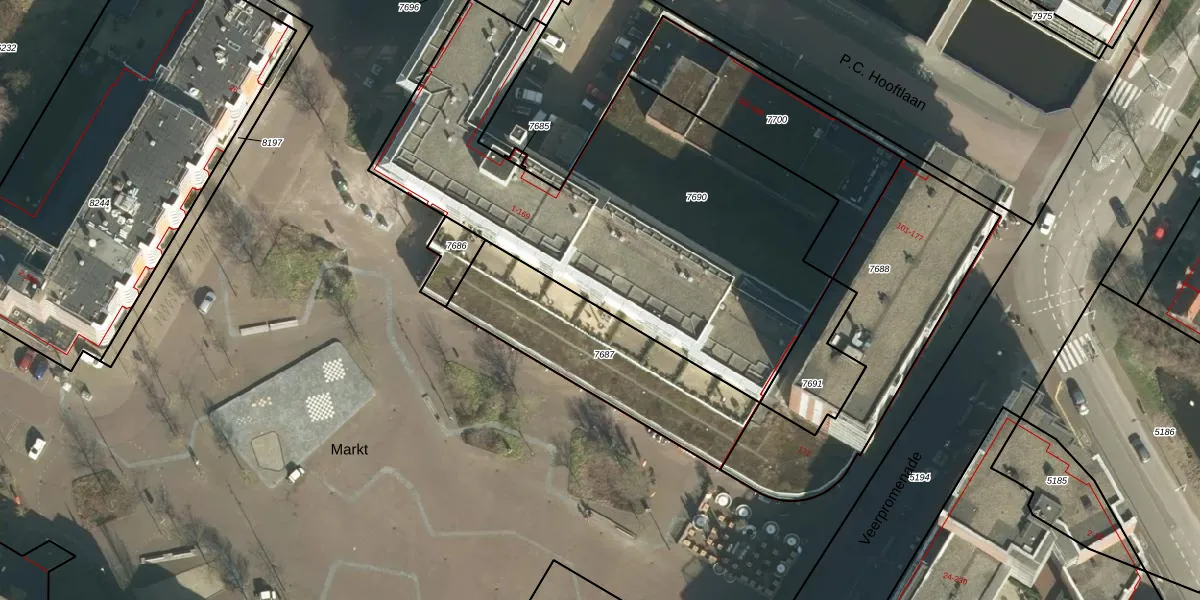 Het perceel waarop Markt 17 staat heeft een oppervlakte van 2265 m². Dit is een zeer groot perceel. De perceeloppervlakte wordt geregistreerd door het Kadaster. Gedetailleerde informatie over de maten van dit perceel kunt u vinden in het rapport Kadastrale kaart met maatvoering van Markt 17.