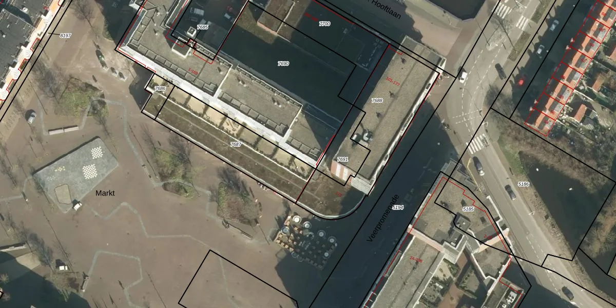 Het perceel waarop Markt 51 staat heeft een oppervlakte van 2265 m². Dit is een zeer groot perceel. De perceeloppervlakte wordt geregistreerd door het Kadaster. Gedetailleerde informatie over de maten van dit perceel kunt u vinden in het rapport Kadastrale kaart met maatvoering van Markt 51.
