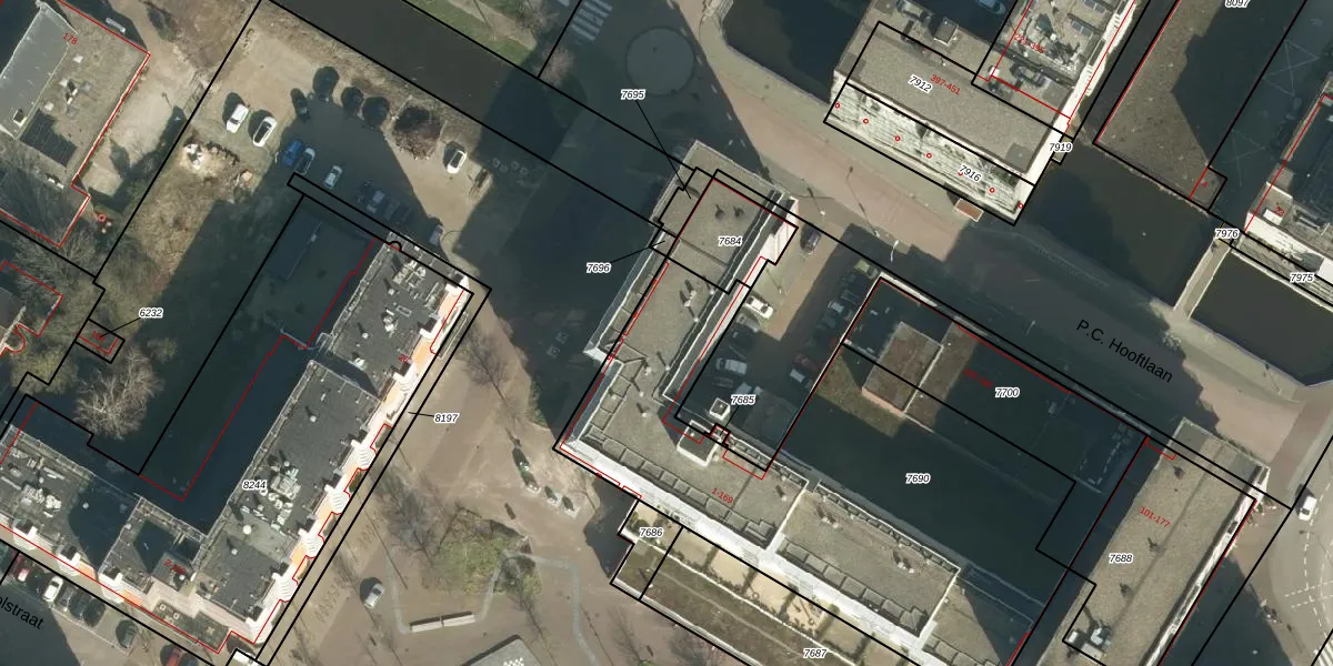 Het perceel waarop Markt 55 staat heeft een oppervlakte van 2265 m². Dit is een zeer groot perceel. De perceeloppervlakte wordt geregistreerd door het Kadaster. Gedetailleerde informatie over de maten van dit perceel kunt u vinden in het rapport Kadastrale kaart met maatvoering van Markt 55.