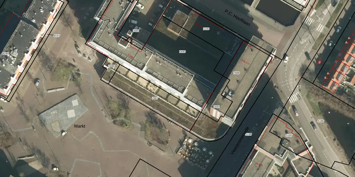 Het perceel waarop Markt 73 staat heeft een oppervlakte van 2265 m². Dit is een zeer groot perceel. De perceeloppervlakte wordt geregistreerd door het Kadaster. Gedetailleerde informatie over de maten van dit perceel kunt u vinden in het rapport Kadastrale kaart met maatvoering van Markt 73.