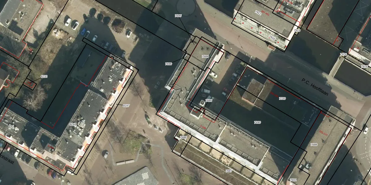 Het perceel waarop Markt 83 staat heeft een oppervlakte van 2265 m². Dit is een zeer groot perceel. De perceeloppervlakte wordt geregistreerd door het Kadaster. Gedetailleerde informatie over de maten van dit perceel kunt u vinden in het rapport Kadastrale kaart met maatvoering van Markt 83.