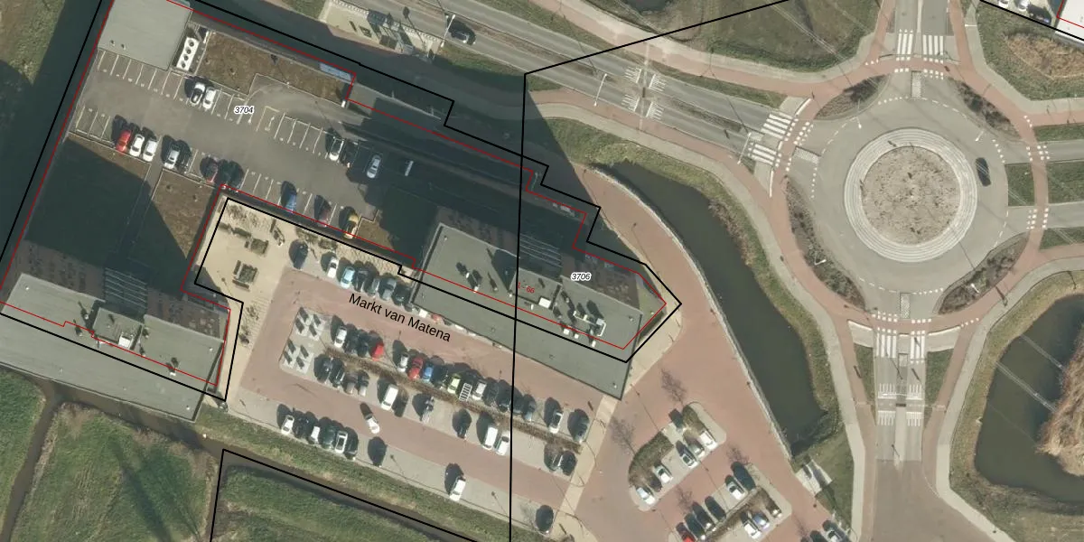 Het perceel waarop Markt van Matena 19 staat heeft een oppervlakte van 611 m². Dit is een groot perceel. De perceeloppervlakte wordt geregistreerd door het Kadaster. Gedetailleerde informatie over de maten van dit perceel kunt u vinden in het rapport Kadastrale kaart met maatvoering van Markt van Matena 19.