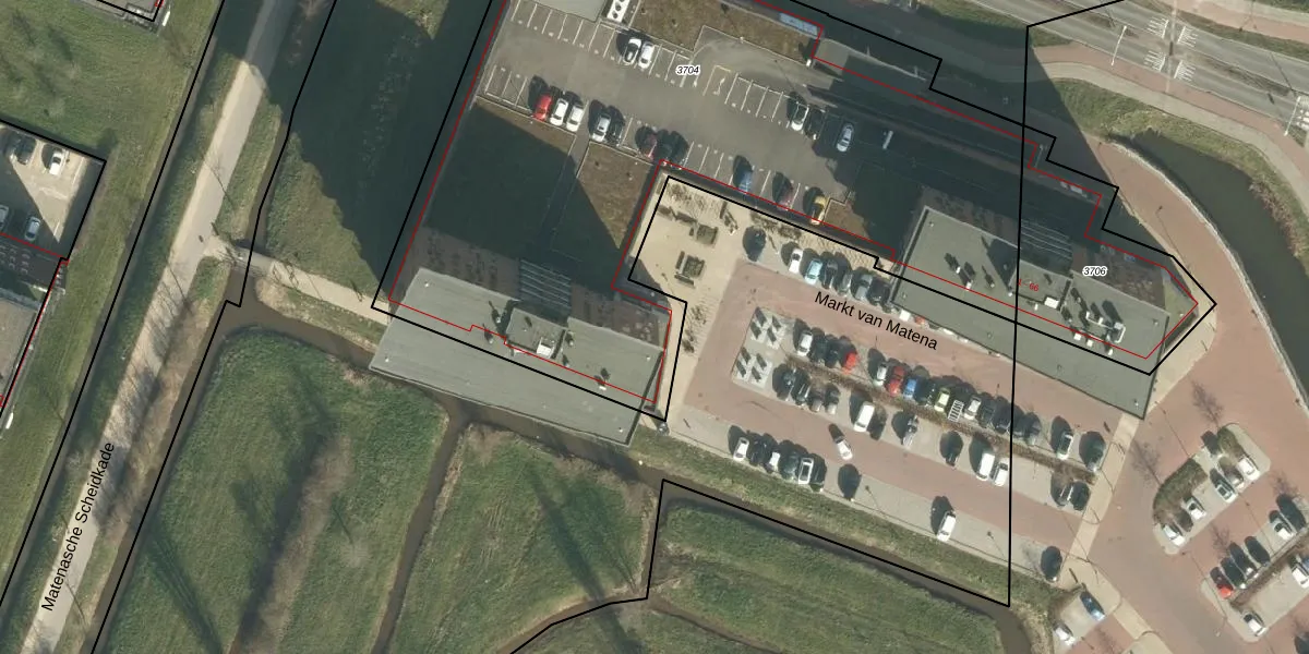 Het perceel waarop Markt van Matena 20 staat heeft een oppervlakte van 4164 m². Dit is een zeer groot perceel. De perceeloppervlakte wordt geregistreerd door het Kadaster. Gedetailleerde informatie over de maten van dit perceel kunt u vinden in het rapport Kadastrale kaart met maatvoering van Markt van Matena 20.