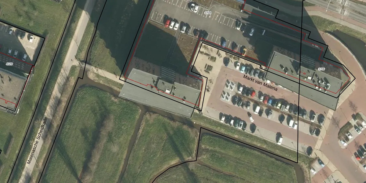 Het perceel waarop Markt van Matena 32 staat heeft een oppervlakte van 4164 m². Dit is een zeer groot perceel. De perceeloppervlakte wordt geregistreerd door het Kadaster. Gedetailleerde informatie over de maten van dit perceel kunt u vinden in het rapport Kadastrale kaart met maatvoering van Markt van Matena 32.