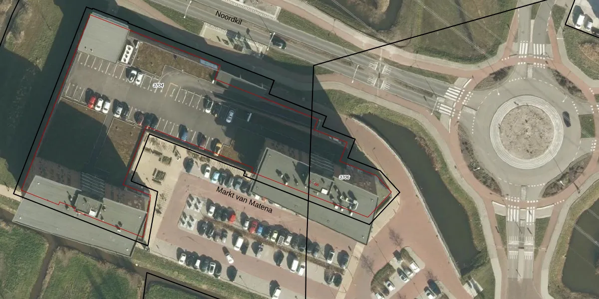 Het perceel waarop Markt van Matena 5 staat heeft een oppervlakte van 4164 m². Dit is een zeer groot perceel. De perceeloppervlakte wordt geregistreerd door het Kadaster. Gedetailleerde informatie over de maten van dit perceel kunt u vinden in het rapport Kadastrale kaart met maatvoering van Markt van Matena 5.