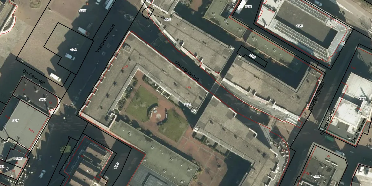 Meentpassage 50 is gelegen op kadastraal perceel PPD00B5184. Deze kadastrale aanduiding is uniek en wordt gebruikt door het Kadaster om eigendomsrechten en andere zakelijke rechten vast te leggen. Het perceel maakt onderdeel uit van de kadastrale gemeente Papendrecht.