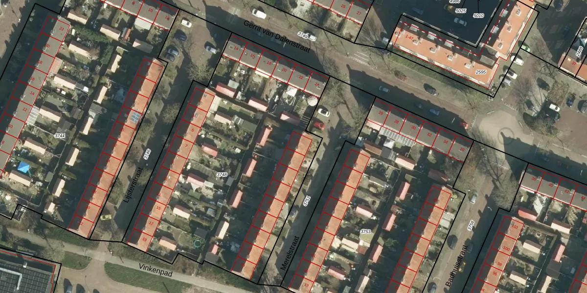 Het perceel waarop Merelstraat 2 staat heeft een oppervlakte van 3508 m². Dit is een zeer groot perceel. De perceeloppervlakte wordt geregistreerd door het Kadaster. Gedetailleerde informatie over de maten van dit perceel kunt u vinden in het rapport Kadastrale kaart met maatvoering van Merelstraat 2.