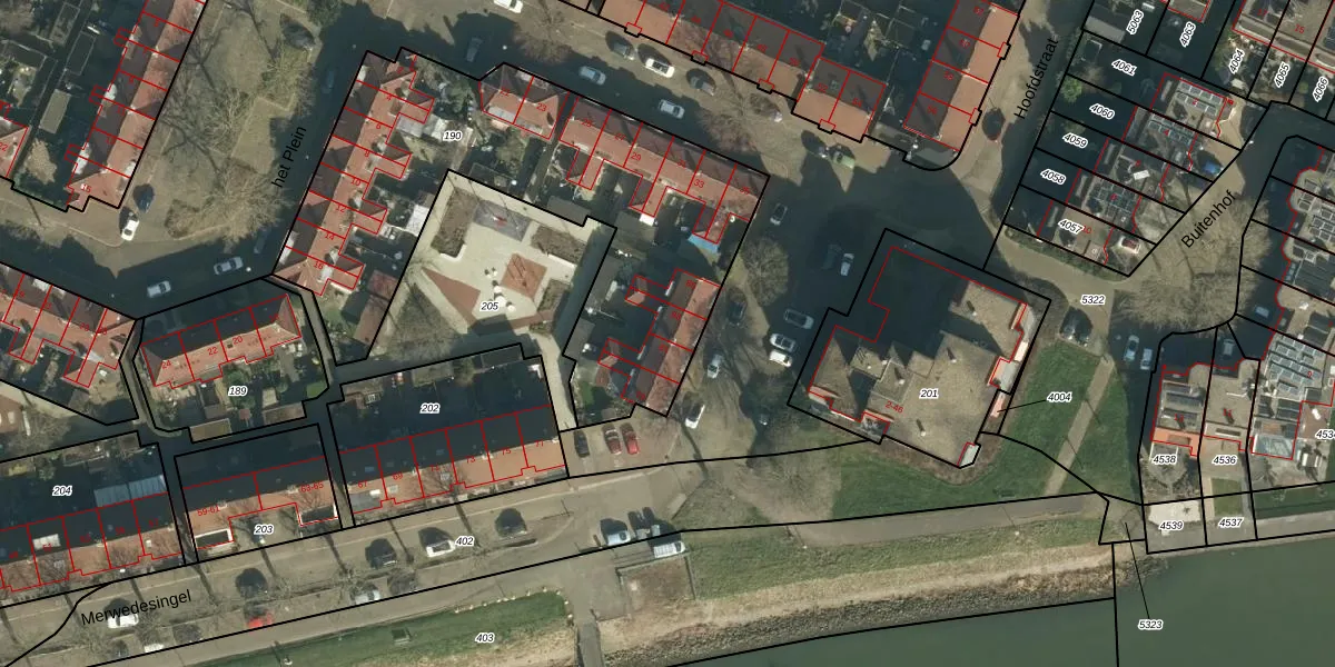 Het adres ligt op het perceel PPD00-D-190, dat zich in de kadastrale gemeente Papendrecht bevindt. De oppervlakte van het perceel is 1950 m². Dat is groter dan gemiddeld in Papendrecht, waar de gemiddelde perceeloppervlakte op 960,56 m² ligt. Het grootste perceel in de kadastrale gemeente is 21,7 ha. Het kleinste perceel heeft een oppervlakte van 0 m². Er zijn 20 adressen aanwezig op het perceel. De huidige grenzen van het perceel zijn digitaal in de Basisregistratie Kadaster (BRK) geregistreerd op 15-01-2008.