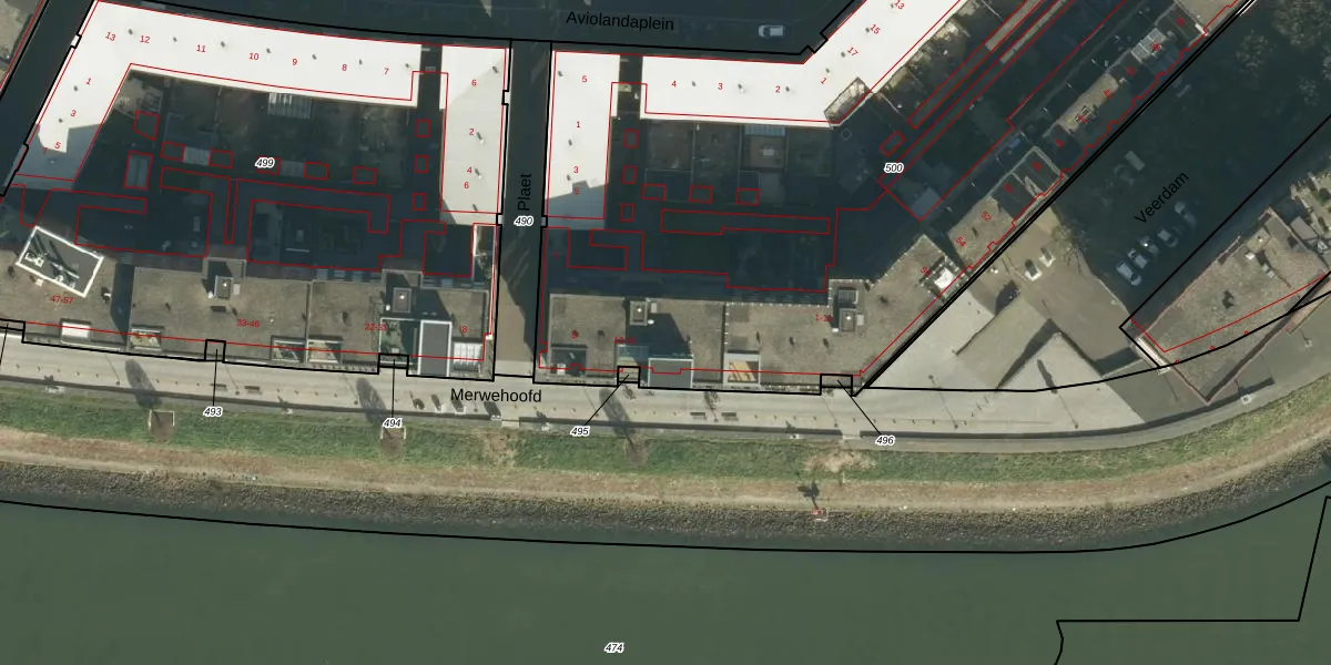 Het perceel waarop Merwehoofd 14 staat heeft een oppervlakte van 5522 m². Dit is een zeer groot perceel. De perceeloppervlakte wordt geregistreerd door het Kadaster. Gedetailleerde informatie over de maten van dit perceel kunt u vinden in het rapport Kadastrale kaart met maatvoering van Merwehoofd 14.