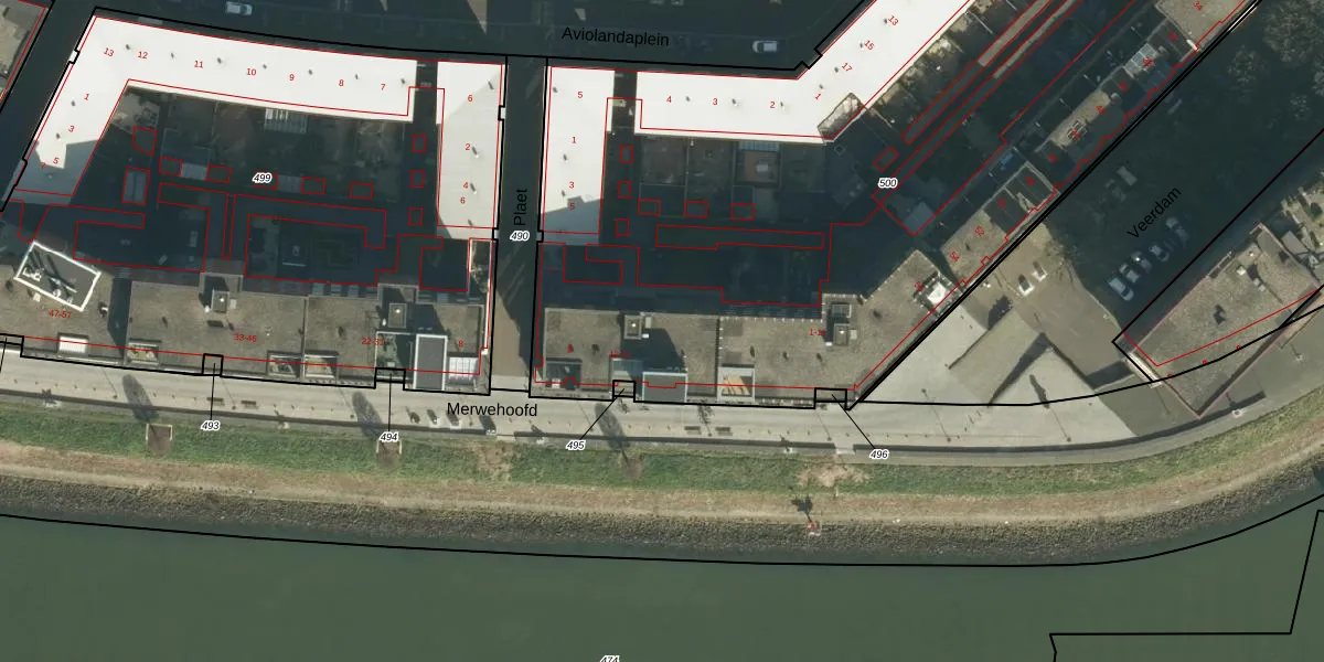 Het perceel waarop Merwehoofd 16 staat heeft een oppervlakte van 5522 m². Dit is een zeer groot perceel. De perceeloppervlakte wordt geregistreerd door het Kadaster. Gedetailleerde informatie over de maten van dit perceel kunt u vinden in het rapport Kadastrale kaart met maatvoering van Merwehoofd 16.