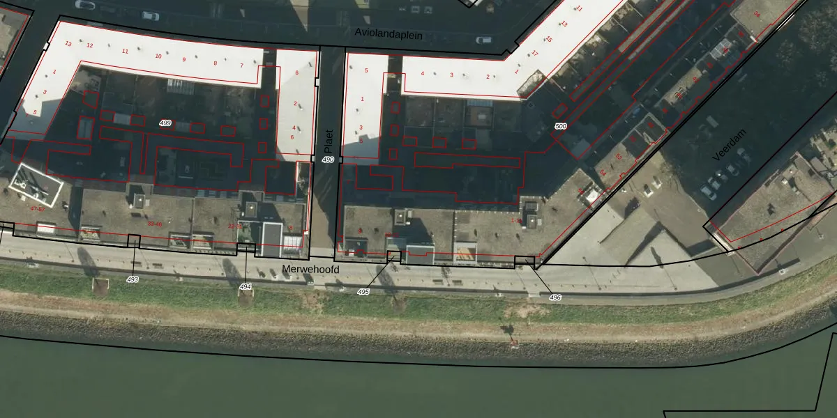 Het perceel waarop Merwehoofd 18 staat heeft een oppervlakte van 5522 m². Dit is een zeer groot perceel. De perceeloppervlakte wordt geregistreerd door het Kadaster. Gedetailleerde informatie over de maten van dit perceel kunt u vinden in het rapport Kadastrale kaart met maatvoering van Merwehoofd 18.