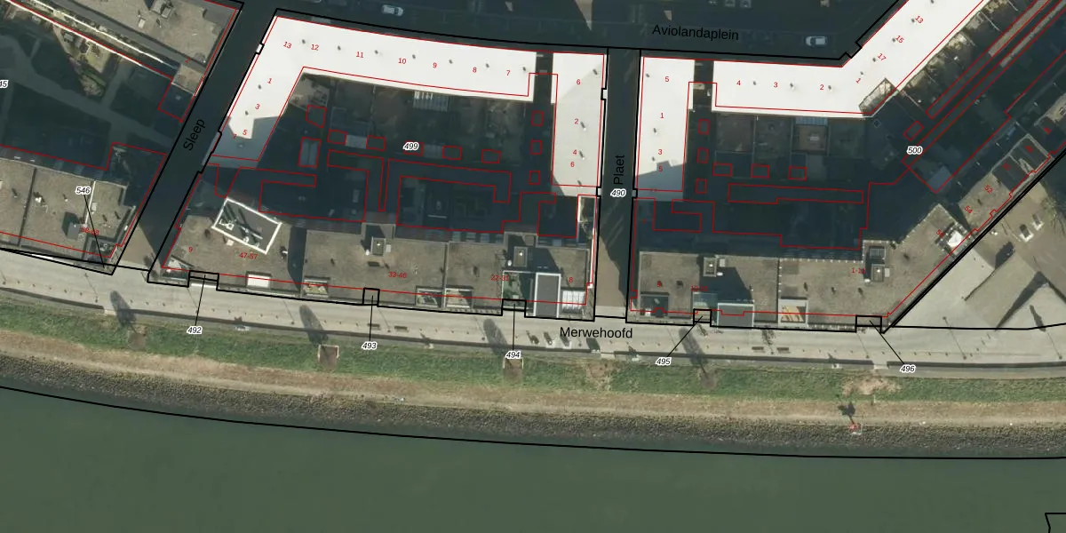 Het perceel waarop Merwehoofd 26 staat heeft een oppervlakte van 3768 m². Dit is een zeer groot perceel. De perceeloppervlakte wordt geregistreerd door het Kadaster. Gedetailleerde informatie over de maten van dit perceel kunt u vinden in het rapport Kadastrale kaart met maatvoering van Merwehoofd 26.