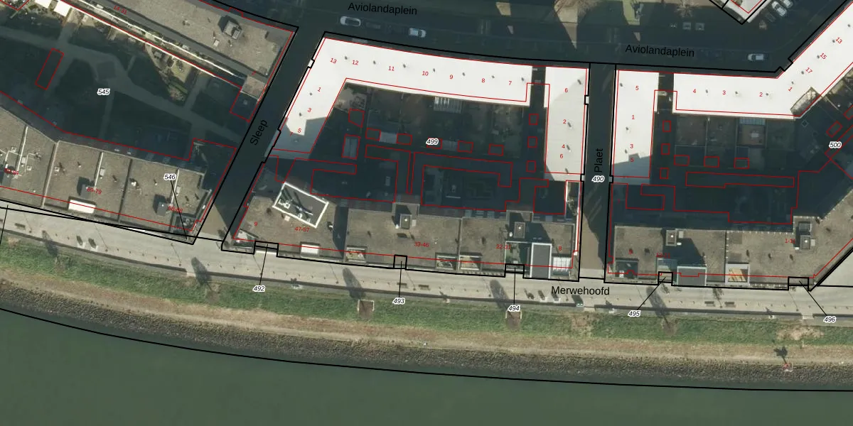 Het perceel waarop Merwehoofd 41 staat heeft een oppervlakte van 3768 m². Dit is een zeer groot perceel. De perceeloppervlakte wordt geregistreerd door het Kadaster. Gedetailleerde informatie over de maten van dit perceel kunt u vinden in het rapport Kadastrale kaart met maatvoering van Merwehoofd 41.