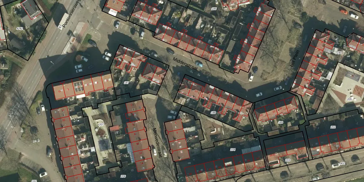 Middenstraat 11 is gelegen op kadastraal perceel PPD00D188. Deze kadastrale aanduiding is uniek en wordt gebruikt door het Kadaster om eigendomsrechten en andere zakelijke rechten vast te leggen. Het perceel maakt onderdeel uit van de kadastrale gemeente Papendrecht.