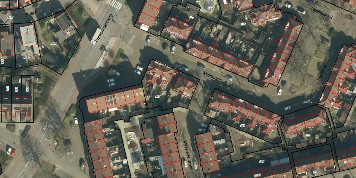 Middenstraat 7 is gelegen op kadastraal perceel PPD00D187. Deze kadastrale aanduiding is uniek en wordt gebruikt door het Kadaster om eigendomsrechten en andere zakelijke rechten vast te leggen. Het perceel maakt onderdeel uit van de kadastrale gemeente Papendrecht.
