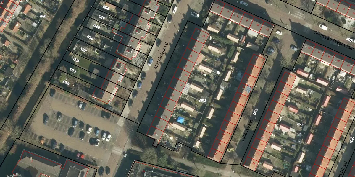Het perceel waarop Muilwijckstraat 12 staat heeft een oppervlakte van 4070 m². Dit is een zeer groot perceel. De perceeloppervlakte wordt geregistreerd door het Kadaster. Gedetailleerde informatie over de maten van dit perceel kunt u vinden in het rapport Kadastrale kaart met maatvoering van Muilwijckstraat 12.