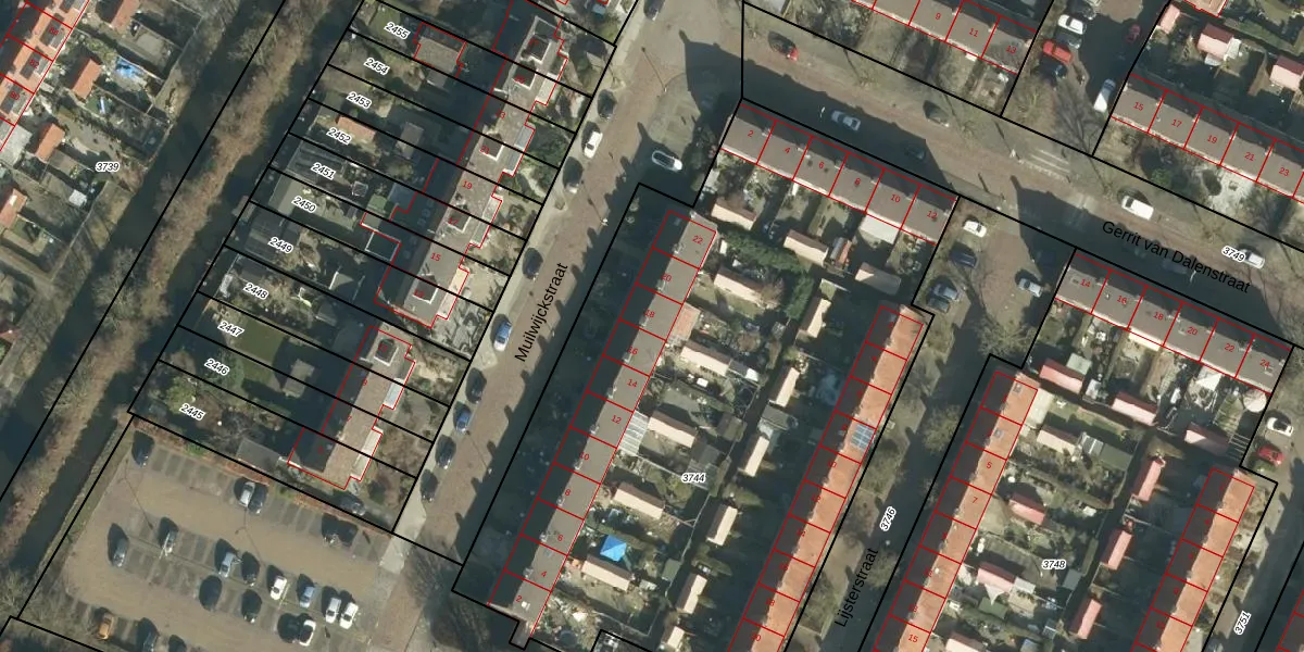 Het perceel waarop Muilwijckstraat 18 staat heeft een oppervlakte van 4070 m². Dit is een zeer groot perceel. De perceeloppervlakte wordt geregistreerd door het Kadaster. Gedetailleerde informatie over de maten van dit perceel kunt u vinden in het rapport Kadastrale kaart met maatvoering van Muilwijckstraat 18.