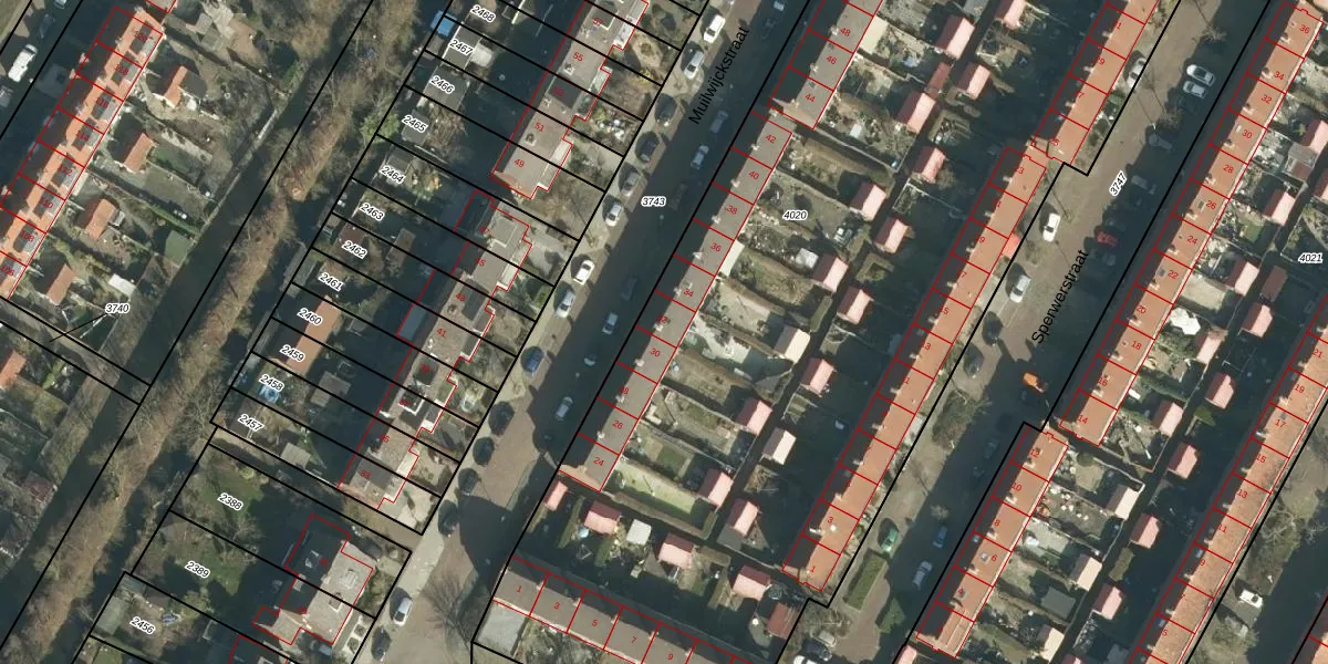 Het perceel waarop Muilwijckstraat 32 staat heeft een oppervlakte van 7700 m². Dit is een zeer groot perceel. De perceeloppervlakte wordt geregistreerd door het Kadaster. Gedetailleerde informatie over de maten van dit perceel kunt u vinden in het rapport Kadastrale kaart met maatvoering van Muilwijckstraat 32.
