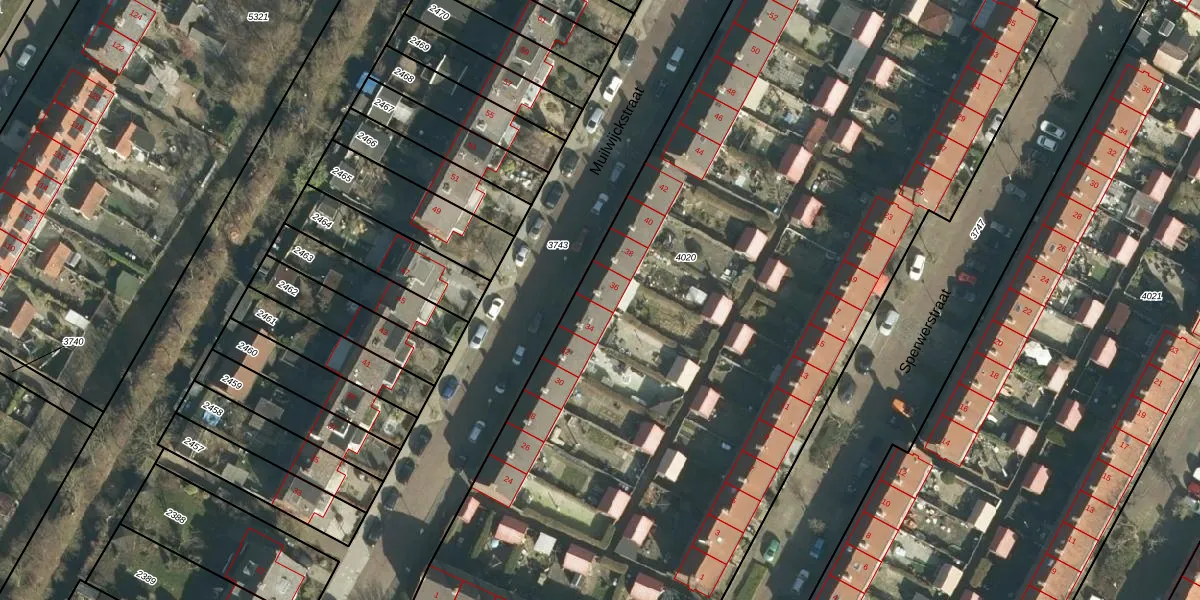 Het perceel waarop Muilwijckstraat 36 staat heeft een oppervlakte van 7700 m². Dit is een zeer groot perceel. De perceeloppervlakte wordt geregistreerd door het Kadaster. Gedetailleerde informatie over de maten van dit perceel kunt u vinden in het rapport Kadastrale kaart met maatvoering van Muilwijckstraat 36.