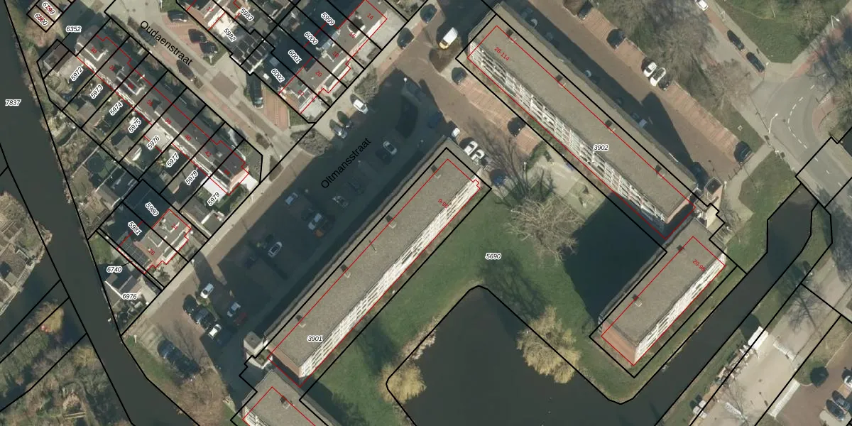 Het perceel waarop Oltmansstraat 45 staat heeft een oppervlakte van 1505 m². Dit is een zeer groot perceel. De perceeloppervlakte wordt geregistreerd door het Kadaster. Gedetailleerde informatie over de maten van dit perceel kunt u vinden in het rapport Kadastrale kaart met maatvoering van Oltmansstraat 45.