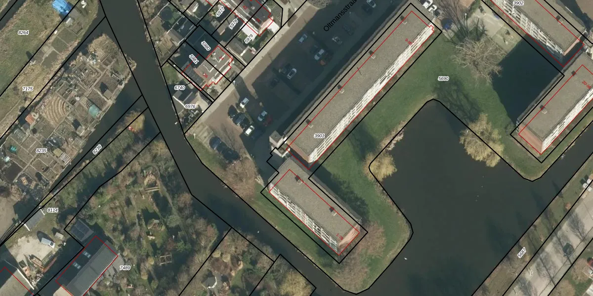 Het perceel waarop Oltmansstraat 9 staat heeft een oppervlakte van 1505 m². Dit is een zeer groot perceel. De perceeloppervlakte wordt geregistreerd door het Kadaster. Gedetailleerde informatie over de maten van dit perceel kunt u vinden in het rapport Kadastrale kaart met maatvoering van Oltmansstraat 9.