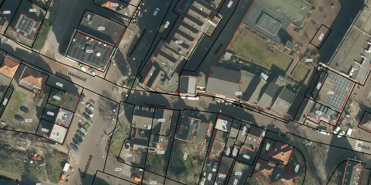 Het perceel waarop Oude Veer 38 staat heeft een oppervlakte van 1,5 ha. Dit is een zeer groot perceel. De perceeloppervlakte wordt geregistreerd door het Kadaster. Gedetailleerde informatie over de maten van dit perceel kunt u vinden in het rapport Kadastrale kaart met maatvoering van Oude Veer 38.