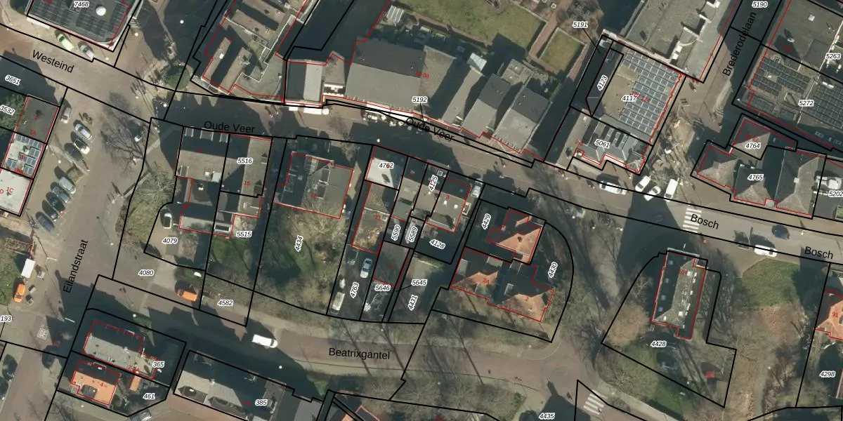 Het perceel waarop Oude Veer 5 staat heeft een oppervlakte van 65 m². Dit is een klein perceel. De perceeloppervlakte wordt geregistreerd door het Kadaster. Gedetailleerde informatie over de maten van dit perceel kunt u vinden in het rapport Kadastrale kaart met maatvoering van Oude Veer 5.