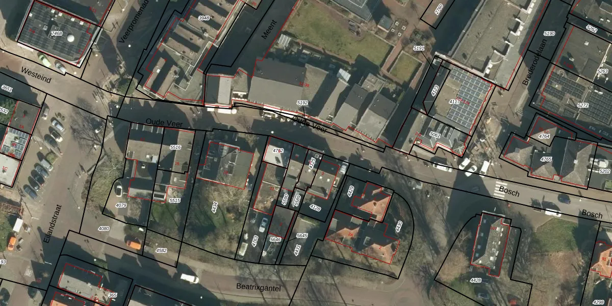 Het perceel waarop Oude Veer 7-A staat heeft een oppervlakte van 91 m². Dit is een klein perceel. De perceeloppervlakte wordt geregistreerd door het Kadaster. Gedetailleerde informatie over de maten van dit perceel kunt u vinden in het rapport Kadastrale kaart met maatvoering van Oude Veer 7-A.