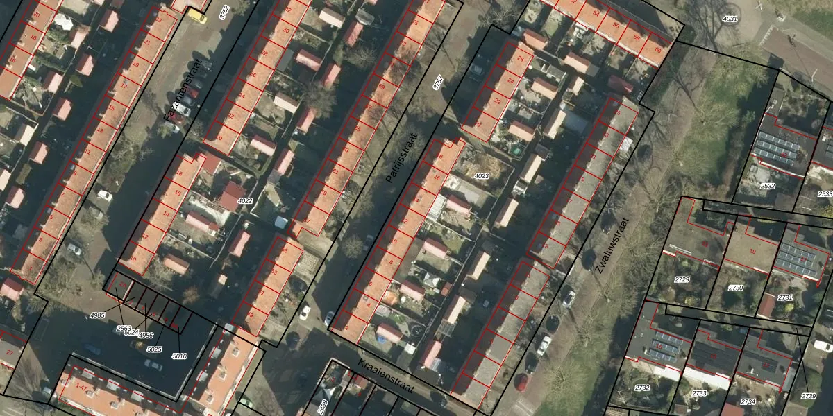 Het perceel waarop Patrijsstraat 14 staat heeft een oppervlakte van 4495 m². Dit is een zeer groot perceel. De perceeloppervlakte wordt geregistreerd door het Kadaster. Gedetailleerde informatie over de maten van dit perceel kunt u vinden in het rapport Kadastrale kaart met maatvoering van Patrijsstraat 14.