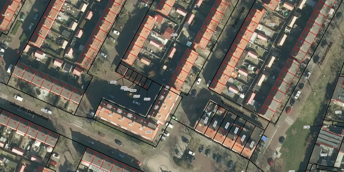 Patrijsstraat 49 is gelegen op kadastraal perceel PPD00B4022. Deze kadastrale aanduiding is uniek en wordt gebruikt door het Kadaster om eigendomsrechten en andere zakelijke rechten vast te leggen. Het perceel maakt onderdeel uit van de kadastrale gemeente Papendrecht.