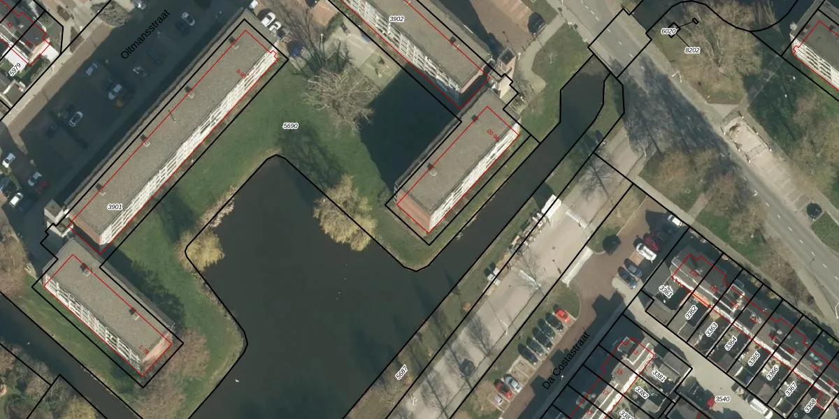 Het adres ligt op het perceel PPD00-A-3902, dat zich in de kadastrale gemeente Papendrecht bevindt. De oppervlakte van het perceel is 1505 m². Dat is groter dan gemiddeld in Papendrecht, waar de gemiddelde perceeloppervlakte op 960,47 m² ligt. Het grootste perceel in de kadastrale gemeente is 21,7 ha. Het kleinste perceel heeft een oppervlakte van 0 m². Op het perceel liggen in totaal 48 adressen. De huidige grenzen van het perceel zijn digitaal in de Basisregistratie Kadaster (BRK) geregistreerd op 06-07-2000.