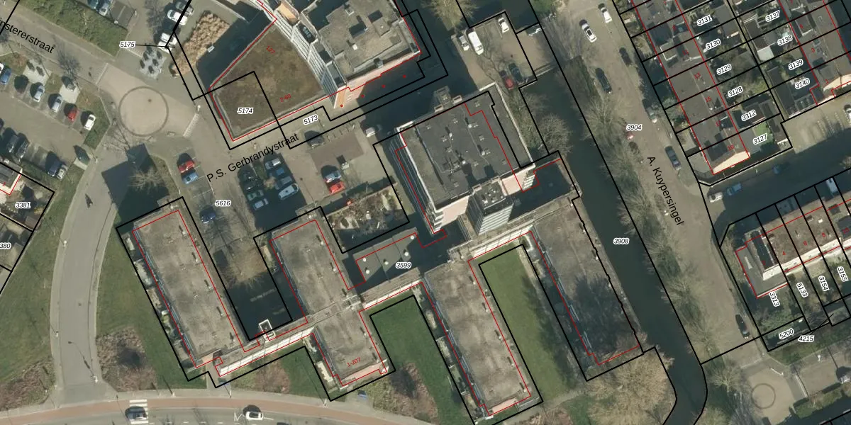 Het perceel waarop P.S. Gerbrandystraat 105 staat heeft een oppervlakte van 4135 m². Dit is een zeer groot perceel. De perceeloppervlakte wordt geregistreerd door het Kadaster. Gedetailleerde informatie over de maten van dit perceel kunt u vinden in het rapport Kadastrale kaart met maatvoering van P.S. Gerbrandystraat 105.