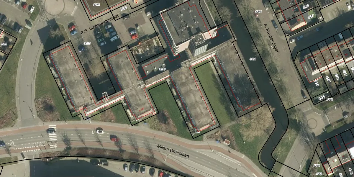Het perceel waarop P.S. Gerbrandystraat 121 staat heeft een oppervlakte van 4135 m². Dit is een zeer groot perceel. De perceeloppervlakte wordt geregistreerd door het Kadaster. Gedetailleerde informatie over de maten van dit perceel kunt u vinden in het rapport Kadastrale kaart met maatvoering van P.S. Gerbrandystraat 121.